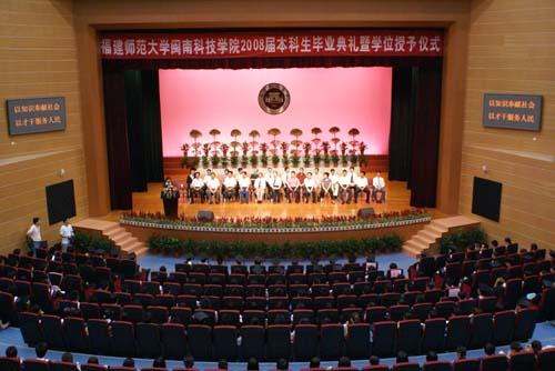 6月20日下午,我院2008届本科学生毕业典礼暨学位授予仪式在师大旗山校区大会堂隆重举行。福建师范大学校长、开云手机入口副董事长、博士生导师李建平教授、福建师范大学开云手机入口副董事长、法人代表戴宽南先生、福建师范大学财务处处长、开云手机入口董事金天钦同志出席典礼仪式,出席典礼仪式的还有各合作学院领导、辅导员、教师代表、我院全体党政领导、各系、部负责人、教师代表、部分学生家长、2008届全体毕业生,共800多人。典礼仪式由院党委常务副书记刘静主持。