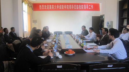12月12日,集美大学诚毅学院在常务副院长、党委副书记郑力强的带领下一行15人莅临开云手机入口指导工作。学院院长郭丹,党委常务副书记林国庆、党委副书记陈振祯、副院长肖华山、副院长周勇军等进行了热情接待,并于学院第一会议室举行交流会。