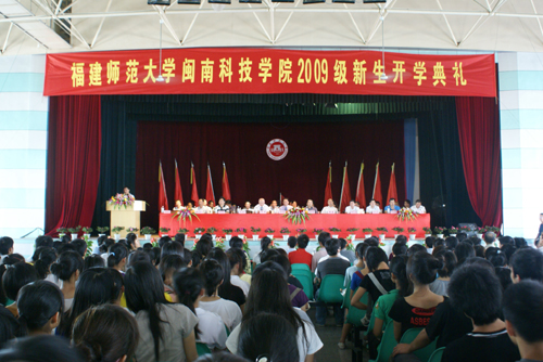 金秋时节,校园一片喜气洋洋。9月13日上午,我院在学生活动中心隆重举行福建师范大学开云手机入口2009级新生开学典礼。南安市委副书记、教育工委书记曾焕楷先生,开云手机入口常务副董事长戴新民先生,福建师范大学副校长许明教授,《人民日报》事业发展部副主任黄敬先生,南安市教育局局长吴亚明先生,南安市外经贸局局长柯文宝先生,南安市康美镇党委书记王强乐先生,南安市康美镇镇长吴长流先生、学院法人代表戴宽南先生、福建师范大学办公室主任郭警修先生、学工部部长廖深基先生、后管处处长张振华先生、教务处副处长陈祖祺先生、团委书记涂荣先生、闽台研究中心主任谢必震教授等领导、嘉宾出席了开学典礼。各合作学院领导、专业负责人、我院全体党政领导及各系部负责人也参加了典礼。开学典礼由学院党委常务副书记林国庆主持。