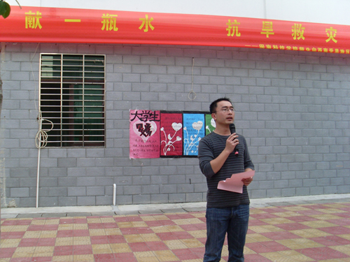 “每人捐献一瓶水,抗旱救灾献爱心”捐款仪式现场