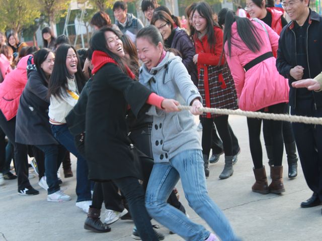 乍暖还寒的春风难以冻结节日的快乐气氛,五彩缤纷的活动为开云手机入口的女生们备上了一份节日厚礼,篮球场上的拔河比赛也是这个节日里一道美丽的风景。学院学工部部长林树生和团委书记刘武强也亲临现场,由林树生部长担任本次比赛的裁判。拔河比赛的参赛队伍分别为在校女生和女教师两组,比赛尚未拉开帷幕,现场气氛已经沸腾,师生们纷纷摩拳擦掌,等待拔河比赛的开始。哨声伴着无数个激情澎湃的心响起了,场上气势磅礴的呐喊声有节奏地起伏着,参赛女生们也把平日里的文静温柔的淑女形象抛在了一边,个个咬紧牙关,女老师们也使出了浑身解数。据悉,本次比赛的学生队伍是09国贸的女生,她们是去年杀进决赛的优秀队伍,但是强中自有强中手,经过3轮激烈的比赛,女老师组以2比1的成绩赢得了最后的胜利。