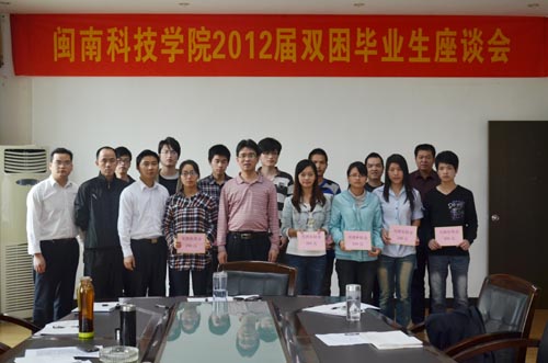 3月30日,我院召开2012届“双困”毕业生座谈会,党委副书记陈振祯、学工部部长林树生、招就部主任汪艺明等老师以及“双困”毕业生代表参加座谈会。会议由招就部副主任陈范武主持。