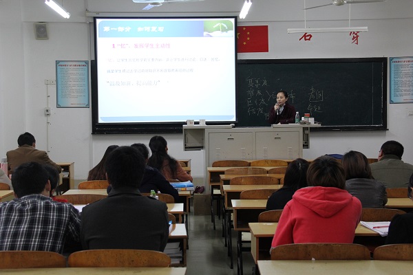 讲座上,戴玉梅提出复习课应遵循自主性、针对性、系统性三大原则,充分发挥学生的自主能动性。她强调出试卷时,主客观题型的比例要适当、文字表述必须规范、把握好难度,遵循“先易后难”的规律、力求卷面排版整齐美观、题目分值设置恰当。