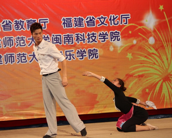 演出中,福建师大音乐学院师生表演了女声二重唱《锦绣前程》、舞蹈技巧组合《心随舞动》、女高音独唱《七月的草原》、双人舞《日子》、女生独唱《芦花》、男高音独唱《我的太阳》、民族舞串烧《中华梦》等一系列优秀节目,演员们高超的技艺、优美的舞姿、精湛的表演和精准的解说,无不赢得了在场同学的阵阵掌声和一致好评。专场演出在全体演员豪迈的歌声《我和我的祖国》中圆满落幕。