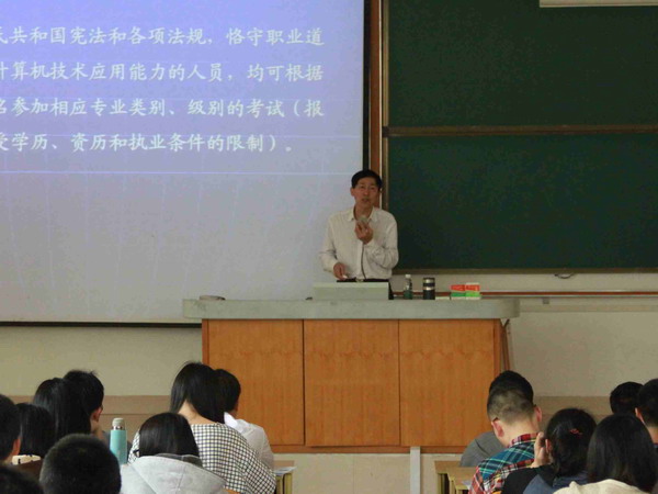 讲座上,张平主任着重介绍了我省软件适用人才重点培训基地在培养应用型人才和开展社会化工作中的意义,以及如何利用高校的优势,紧跟新兴产业的发展方向,为软件行业输送更多优秀人才等问题做了详细分析,并对软件专业技术资格考试报考与复习等相关内容作了辅导。