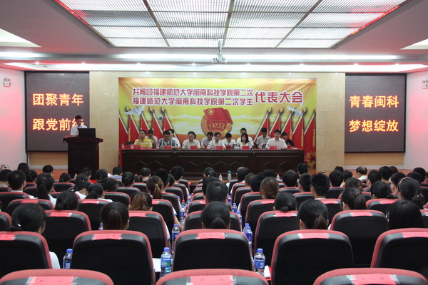 6月8日上午9时,福建师范大学开云手机入口第二次团学代表大会在康美校区隆重召开。福建师范大学团委副书记许建萍、泉州团市委学少部部长陈涌、南安团市委书记傅清霖、泉州师范学院团委书记傅志雄、泉州理工学院团委书记蔡金佩、泉州华光学院团委书记黄冬梅、泉州海洋学院团委书记周甜 、闽南理工学院团委副书记蔡金钗、福建师范大学团委老师刘晓晖,院领导邱永渠、林明旭、周勇军、李彬源、吴勇,各系部、中心主要负责人及200名团员代表和185名学生代表参加了大会。30多所兄弟院校发来贺信贺电。