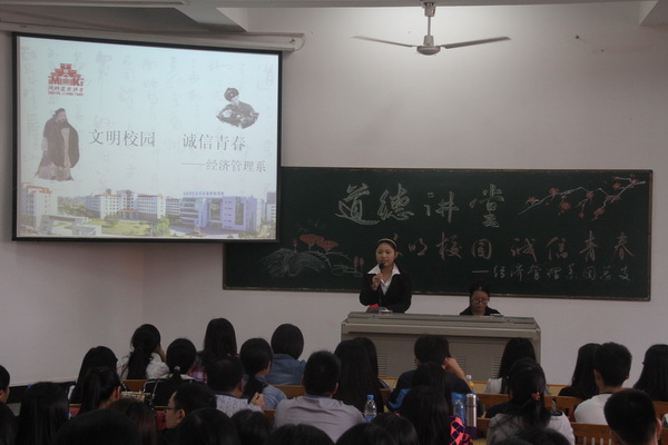 据悉,经济管理系在本学期伊始,学生干部就组织策划道德讲堂系列活动,旨在通过在每个专业分别举办道德讲堂活动,搭建学生感悟、学习、领会道德精神内核实质的平台,在全系范围内形成良好氛围,引导广大师生传承中华传统美德,弘扬社会正能量,培育和践行社会主义核心价值观。