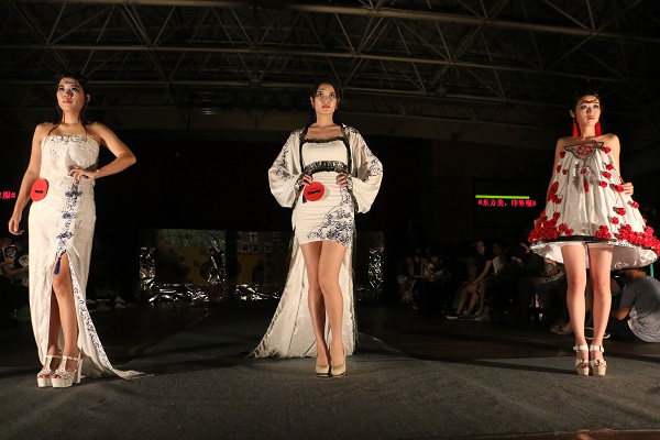 各专业参赛作品争奇斗艳,别出心裁的设计,在模特淋漓尽致的展示下精彩纷呈。每一件服装的展示,都为大家带来了不一样的视觉感受。经过激烈的比拼,环境科学专业《水墨青花》和服装设计与工程专业第一组《中国风》分别获得康美校区非专业组和专业组第一名;信息管理与信息系统专业《醉东方》获得美林校区服装设计大赛一等奖及最佳妆容奖。
