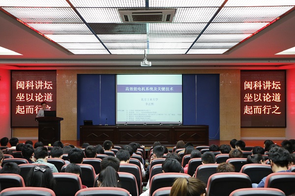 讲座上,李正熙教授对高效能电机系统进行了详细概述,并强调高效能高品质电机未来发展的重要意义和作用。他还从科学技术研究导向、国家政策导向、积极的核心技术以及各大电机模型的建立等方面就提高电机系统能效作了详细分析。