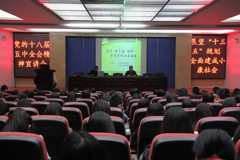 为深入学习贯彻党的十八届五中全会精神,12月9日下午,院党委邀请南安市委宣讲团成员、我院思政教研部主任郭伟副教授作题为“展望十三五规划,全面建成小康社会”专题报告。报告会由院党委常务副书记林明旭主持。各党支部书记、学生党员300多人听取了报告。