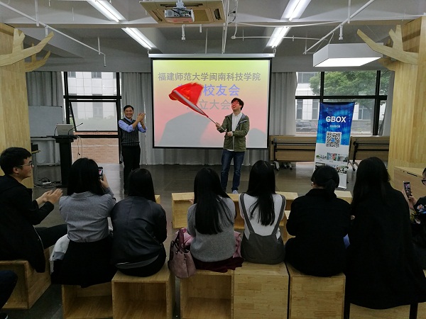 在授旗仪式上,邱永渠院长向苏州校友会授旗,陈文峰接旗。陈文峰在发言中饱含深情地回忆了自己在闽科四年的求学经历,对母校的关怀和培养表达了感激之情。他表示,要珍惜获得“会长”的荣誉,以高度的责任心管理好苏州校友会,为苏州校友提供更多帮助,促进他们更好地适应苏州的生活和工作。