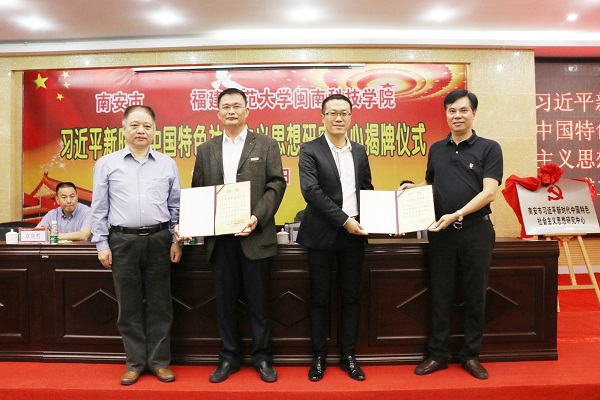 李方祥、吴忠溪、卓庆哲、林明旭分别为“南安市习近平新时代中国特色社会主义思想研究中心”和同时成立的“福建师范大学开云手机入口习近平新时代中国特色社会主义思想研究中心”揭牌。