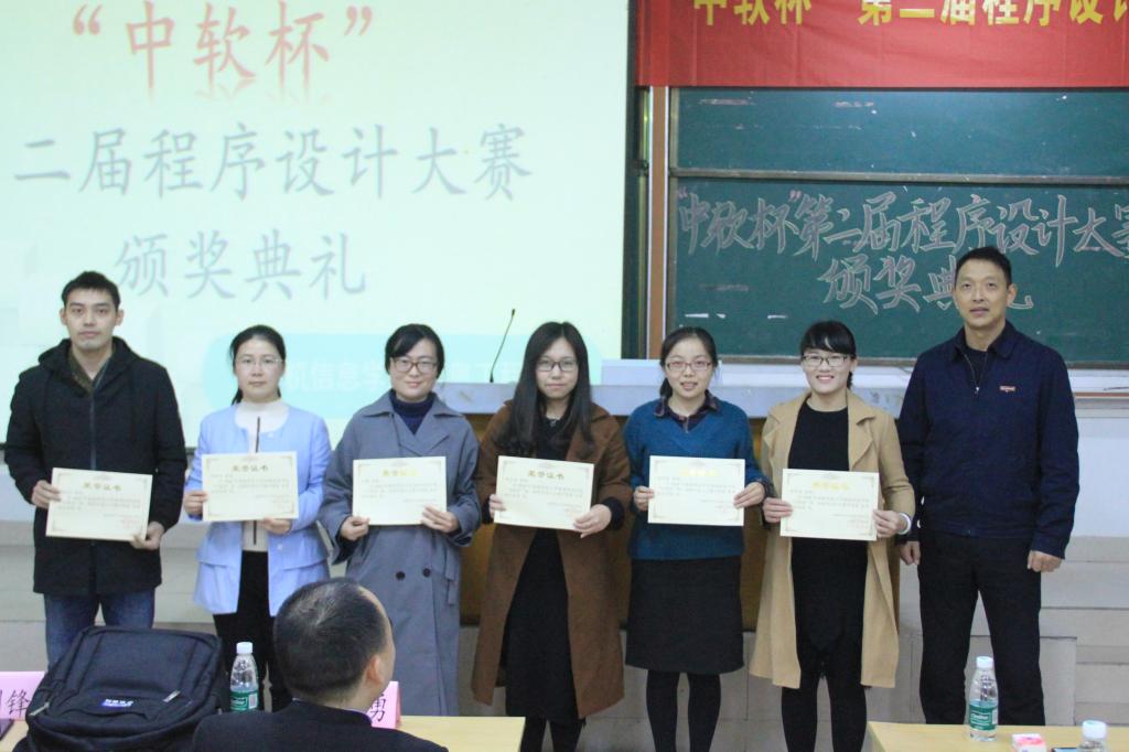 此次大赛以“小程序大智慧”为主题,分为初赛与决赛两个环节,参赛选手使用C、C++、Java、MATLAB等编程语言进行程序设计,经过激烈角逐,2016级网络工程专业曾志文同学获得大赛一等奖,颁奖仪式上,吴勇副院长为陈美龙、彭青梅、王敬、郑丽丽、林玉容、缪海星等6名老师颁发了“优秀指导老师奖”。