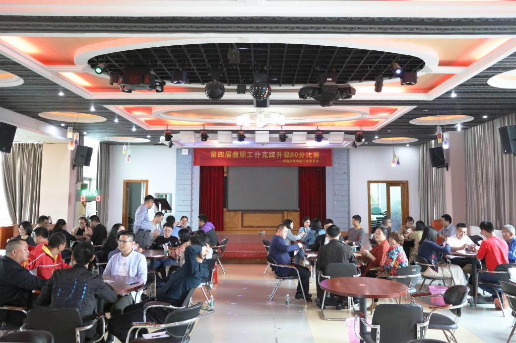 5月8日,为庆祝“五一”国际劳动节,院工会在教工活动中心举办第四届教职工扑克牌80分比赛。来自各二级学院、各职能部门的40支队伍80名选手参加角逐。