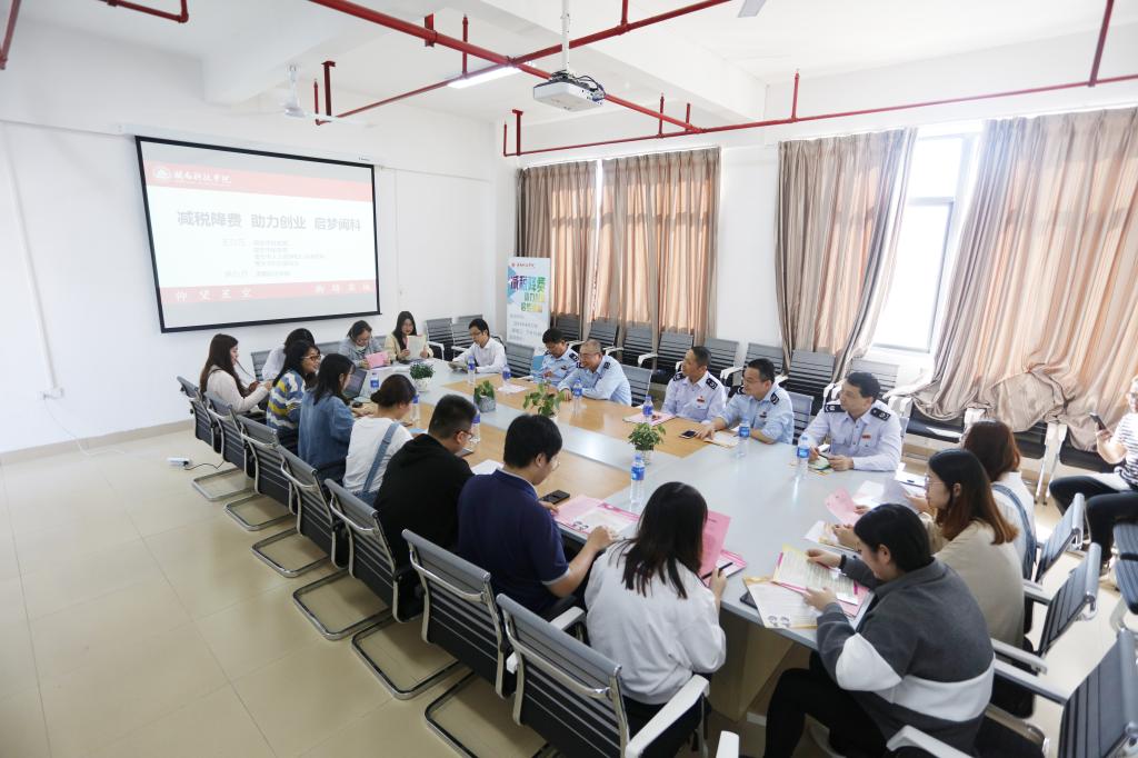 “减税降费政策的享受主体包括哪些?优惠内容有哪些?”“高校毕业生就业创业具体政策有哪些,有没有年限要求?”4月17日下午,南安市财政局、税务局、人力资源和社会保障局、妇女联合会及相关金融单位联合走进开云手机入口,开展“减税降费 助力创业 启梦闽科”系列宣讲活动,为大学生送上就业创业优惠政策红利。
