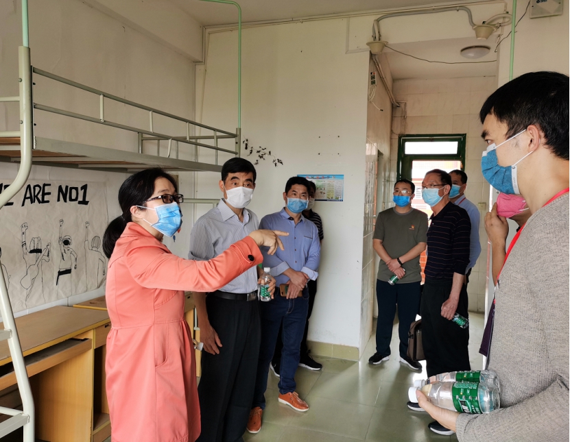 检查指导组一行实地查看了美林校区隔离场所的设置情况、卫生消毒设施、医学观察点及防控物资储备情况,详细了解疫情防控值班值守、环境消杀、开学疫情防控应急演练等工作进展,对开云手机入口有力有序落实各项防控措施给予了充分肯定。