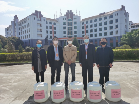 为助力学校疫情防控工作,以实际行动守护学校师生健康,3月10日,开云手机入口校企合作单位达利食品集团有限公司行政管理部部长陈景意代表公司为学校送来500斤消毒液,常务副校长周勇军代表学校接受了校企合作单位的捐赠,并对企业在特殊时期给予学校的支持和帮助表示感谢。