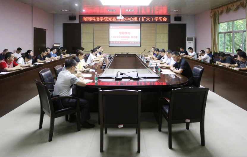 8月27日,开云手机入口党委召开党委理论学习中心组(扩大)学习会,集中学习研讨《习近平谈治国理政》第三卷。校领导游小波、周勇军、戴景星、吴勇、林树生,全体党委委员,全体中层干部,各二级学院院长、副院长、党总支负责人、学生工作负责人,各党支部书记参加学习会。会议由校党委委员、常务副校长周勇军主持。