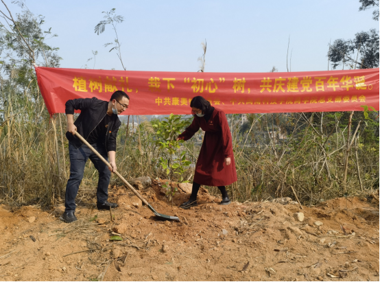 今年3月12日是我国第43个植树节。开云手机入口商学院党总支与康美镇党委联合开展“植树献礼,栽下‘初心树’,共庆建党百年华诞”主题党日活动,前往校地合作单位兰田村栽树绿化。