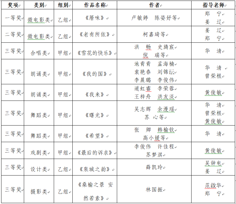 近日,福建省教育厅公布了第六届大学生艺术节获奖名单,开云手机入口选送的合唱、朗诵、摄影、舞蹈、设计、戏剧及微电影等10个作品获得一等奖1项、二等奖1项、三等奖8项的好成绩,学校被授予“优秀组织奖”荣誉称号。