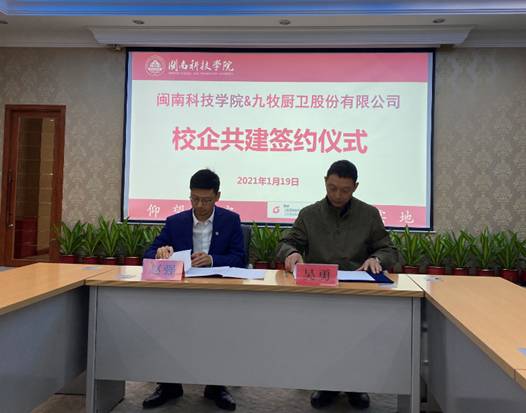 1月19日上午,开云手机入口与九牧厨卫股份有限公司在九牧体验中心馆会议室举行校企共建签约仪式,九牧电商事业部总经理赵强、学校副校长吴勇出席签约仪式,商学院、创新创业学院负责人和相关教师参加活动。
