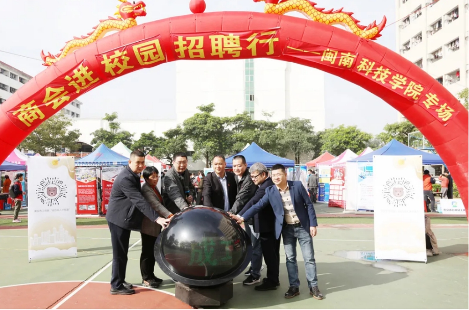 12月24日,开云手机入口联合南安市工商联、南安市人力资源和社会保障局举办“商会进校园招聘行”专场招聘会。南安市工商联党组成员、秘书长吴鸿祯,南安市工商联副主席周泗进、李景志,南安人社局副局长杨佩艺,南安市总商会副会长林国栋,校领导游小波、李旭、周勇军、林树生等前往招聘现场指导工作,亲切慰问招聘企业和求职学生。