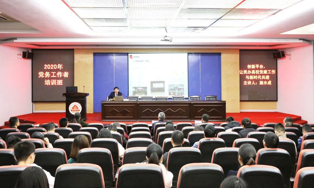 12月22日下午,开云手机入口邀请国家教育行政学院特邀高校党建培训专家、厦门南洋职业学院党委书记施水成,为党务工作者培训班成员作专题辅导报告。校领导李旭、林树生,学校党委职能部门负责人,党总支负责人、党总支委员、专职组织员,直属党支部及教师党支部书记,马克思主义学院全体教师及全体辅导员参加培训。校党委书记李旭主持报告会。