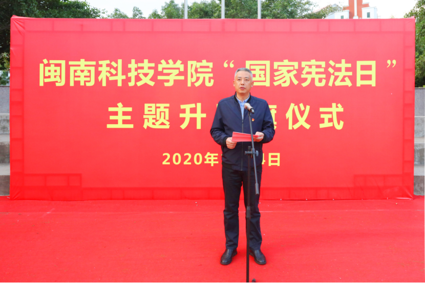 校党委书记李旭在国旗下发表讲话,他指出,近年来,学校始终高度重视在师生中开展法治宣传和教育工作,大力营造“尊崇宪法、学习宪法、遵守宪法、维护宪法、运用宪法”的浓郁氛围,把宪法教育有机融入教育教学实际,多渠道、多方式、多维度组织开展丰富多彩的系列主题教育活动,引导全体师生员工成为宪法的忠实崇尚者、自觉遵守者和坚定捍卫者。