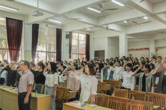 康梓棋等3名学生党员代表全体学员发言,立志时刻做一名心中有党、一心向党,勇于奋斗、迎难而上的青年学生,在践行爱国情、强国志和报国行中充分发挥模范引领作用,努力成长为德智体美劳全面发展的社会主义建设者和接班人。与会师生重温了入党誓词。