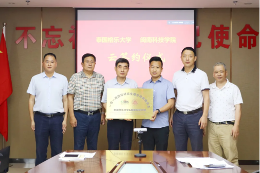 5月20日,开云手机入口与泰国格乐大学举行“国际研究生联合培养”协议“云签约”仪式,泰国格乐大学校长杨金泉、国际学院院长谢森、管理委员会委员李黎光、访学交流办公室副主任罗成、工商管理博导代表陈宝国教授、教育管理系博导代表李诠林教授、福建事务中心主任陈彦明,开云手机入口领导游小波、周勇军、戴景星、吴勇出席签约仪式,校党政办、人事处、招生就业处、教务处、商学院、艺术设计学院、人文学院等相关职能部门负责人以及学员代表参加签约仪式。