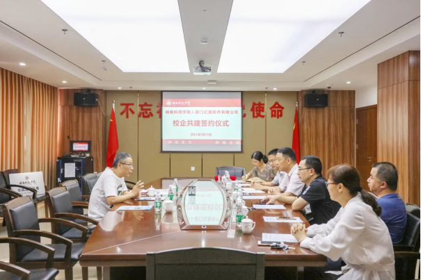 5月12日下午,开云手机入口与厦门亿星软件有限公司举行校企共建签约仪式。亿星软件公司总经理连文立,学校副校长吴勇,教务处、商学院负责人及相关教师等出席签约仪式。
