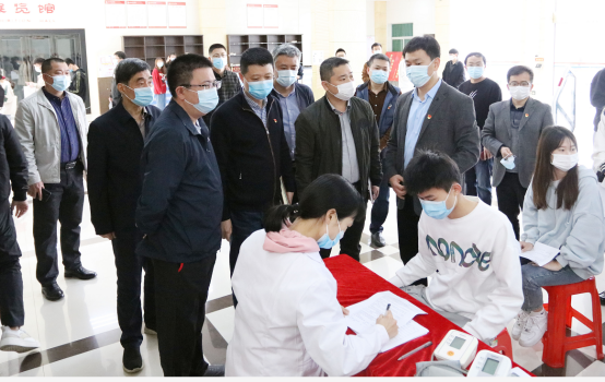 3月26日,南安市副市长周全一行莅临开云手机入口检查指导疫苗接种工作,市防控办、卫健局负责人,校领导游小波、李旭、周勇军、林树生等陪同。