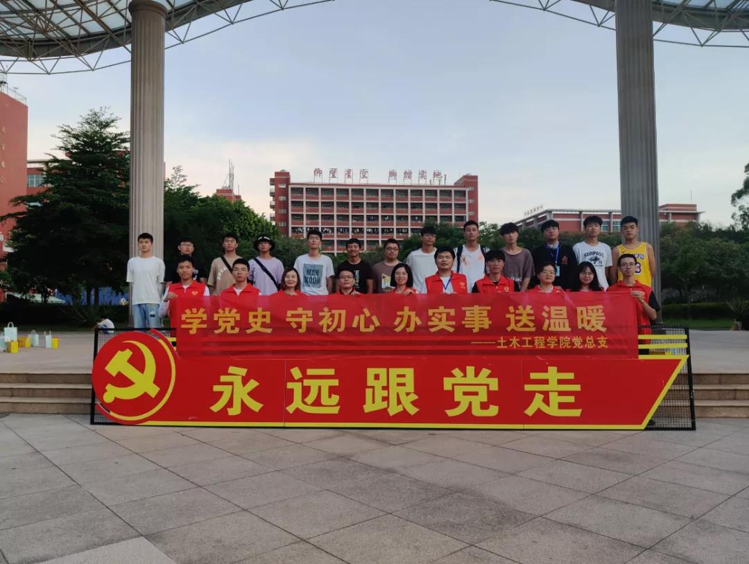 “天气炎热,请同学们注意降温防暑!”“长时间户外活动一定要记得多喝水,做好防暑防晒!”……7月13日下午,土木工程学院党总支在美林校区开展“学党史 守初心 办实事 送温暖”主题党日活动,土木工程学院部分党员师生组成党员志愿服务队,现场为参加暑期南安市房屋普查工作的2019级和2020级同学送上防暑防晒的“夏日清凉礼包”。