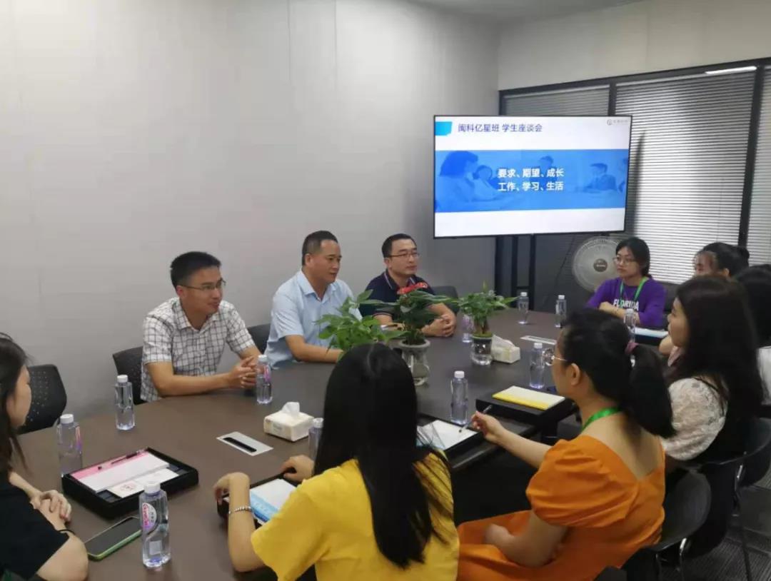 在首届学员座谈会上,周勇军常务副校长鼓励同学们做好吃苦准备、尽快实现角色转换、认真学习和增强本领,希望同学们倍加珍惜来之不易的学习机会,牢记闽科“仰望星空 脚踏实地”校训,勤学苦练,以锲而不舍的精神,圆满完成交换学习及实习任务,争取将来为企业及社会的发展贡献更大的力量。