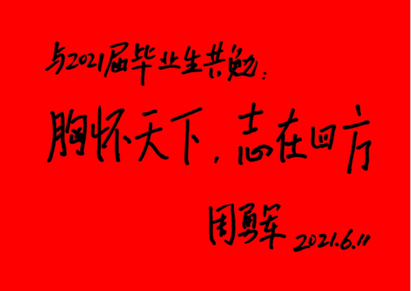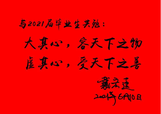 副校长、董事长助理戴景星为2021届毕业生寄语题词