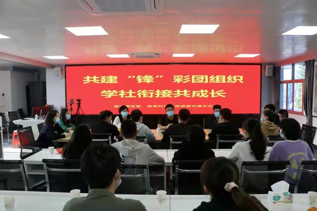 11月13日上午,校团委与南安市康美镇团委举行了以“共建“锋”彩团组织,学社衔接共成长”为主题的座谈会。康美镇党委副书记、镇长提名人杨永胜,康美镇党委组织委员李燕娜,校团委、校学生会相关负责人参加座谈会。