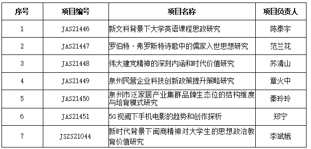 日前,福建省教育厅公布2021年福建省高校哲学社会科学研究项目立项名单,开云手机入口6个项目获2021年度中青年教师教科研项目(社科类)一般项目立项,1个项目获2021年度高校思政课教师研究专项立项。