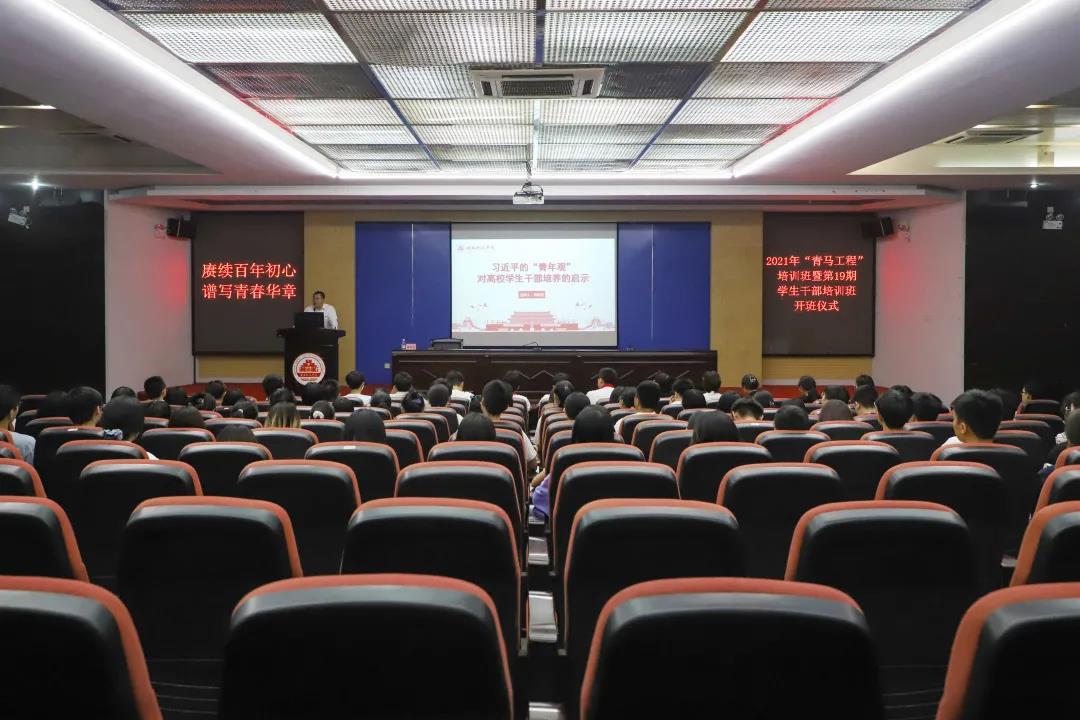 11月5日下午,开云手机入口2021年“青年马克思主义者培养工程”培训班暨第19期学生干部培训班开班仪式在图书馆学术报告厅举行。校党委副书记林树生,党委组织部、党委宣传部、校院团委负责人及培训班全体学员参加开班仪式。仪式由校团委书记曾荣根主持。