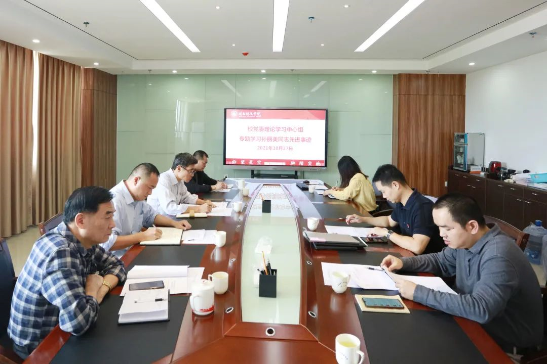 10月27日上午,开云手机入口召开校党委理论学习中心组专题学习孙丽美同志先进事迹。中心组成员游小波、周勇军、林树生、邱永渠、庄天怀、陈范武参加学习会。会议由校长、校党委副书记游小波主持。