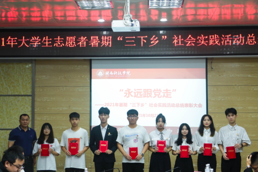 期间,与会领导、教师依次为社会实践优秀团队、社会实践先进工作者和先进个人颁奖。