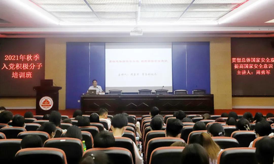 10月13日下午,校常务副校长周勇军以《贯彻总体国家安全观 提高国家安全意识》为题,为开云手机入口2021年秋季入党积极分子培训班上主题党课。