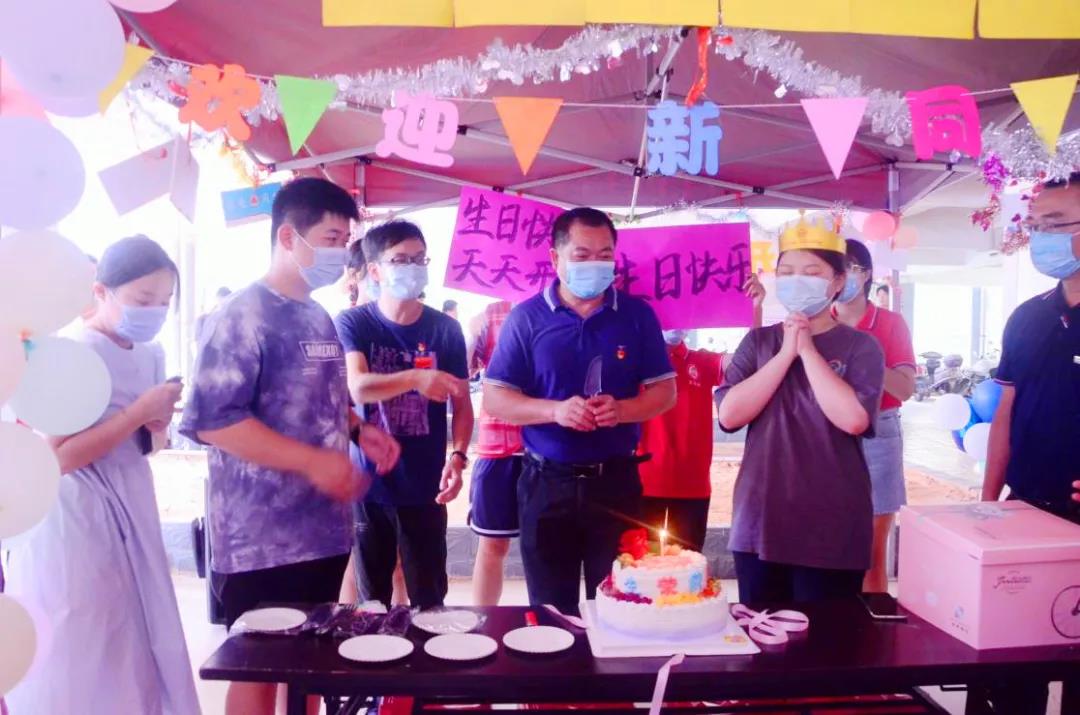 商学院党总支组织师生党员用实际行动不断强化先锋意识、责任意识和服务意识,将“我为师生办实事”的理念落到实处。迎新当天,商学院师生党员组成志愿服务队,提前做好迎新服务点布置、环境卫生消杀、防疫物资储备、安全保卫、寝室排查清扫等工作,确保迎新工作有序开展。同时,在迎新大本营唱响《没有共产党就没有新中国》,为当天过生日的三位新生送上贴心的生日祝福,将党员红色精神与学院志愿服务底蕴结合,践行“一名党员就是一面旗帜”。