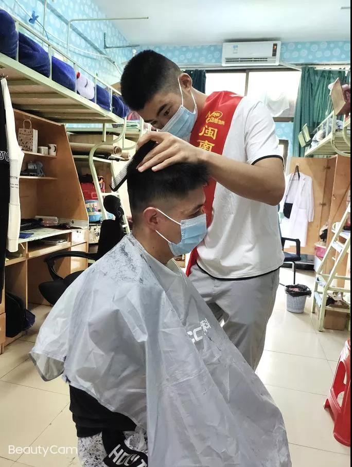 自校园实施封闭管理以来,广大师生外出理发成难题。生命科学与化学学院学生第二党支部自发组建一支“党员志愿理发小分队”,为有需求的师生提供简单的上门理发服务。目前,党员志愿理发小分队在学生第二党支部书记徐惠林的带领下,已为各年级专业学生理发13次。生命科学与化学学院党支部通过做好得人心、暖人心、稳人心的工作,真正把温暖送到广大师生心坎里,让党旗在基层“疫”线高高飘扬。