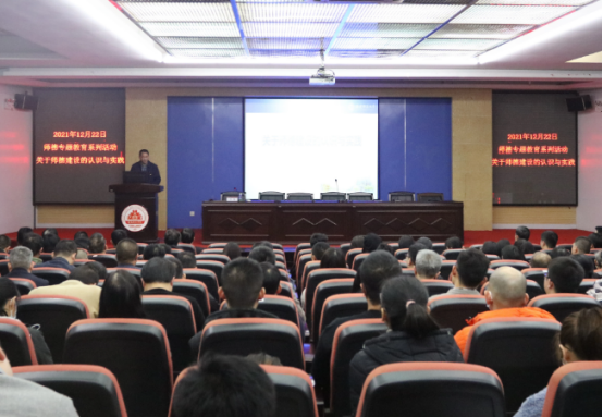 李锋从“师德建设的重要意义”“师德的时代内涵”“师德建设的实践”等三个方面入手,结合习近平总书记关于教育的重要论述和自身教育教学实践,运用严谨的逻辑和生动的案例对师德师风建设的重要性、师德师风建设是落实立德树人根本任务的关键、师德师风建设途径与对策进行了深入细致的讲解。他强调,学校要把师德师风建设作为教师队伍建设的首要任务,着力健全师德师风建设的长效机制,用制度的力量确保师德师风建设常态化、机制化。