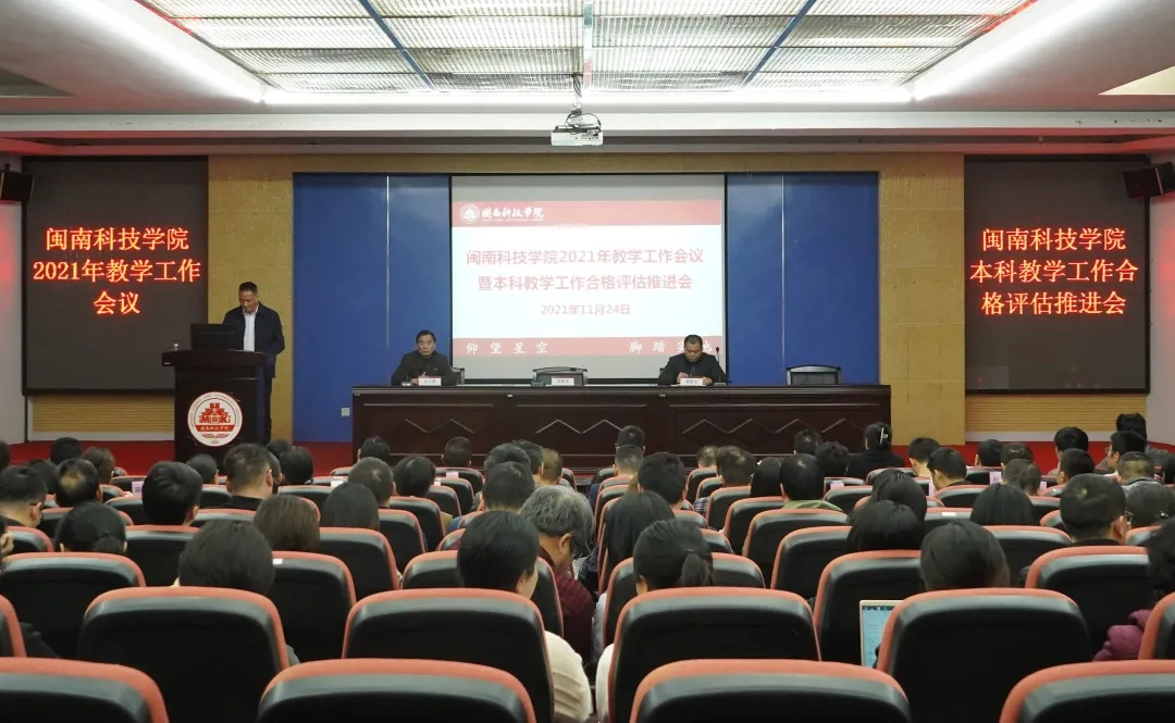 11月24日下午,开云手机入口召开2021年教学工作会议暨本科教学工作合格评估推进会。校领导周勇军、林树生、邱永渠,各行政职能部门负责人、二级学院党政负责人、校教学督导组成员及各学院教师代表参加会议。会议由常务副校长周勇军主持。