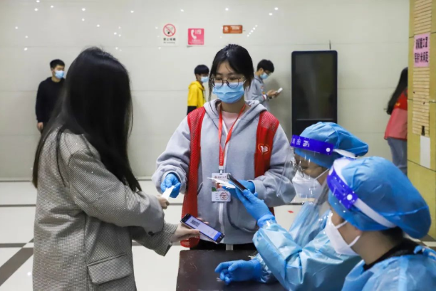 面对时间紧、任务重的情况,当天凌晨4:00,广大医护工作者和师生员工志愿者迅速集结完毕,有序开展核酸检测工作。在南安市委市政府的关心指导和大力支持下,圆满完成了住校7200余名师生员工及家属的核酸检测工作。