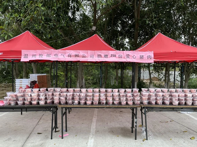 温州俊郎电气有限公司捐赠250份爱心猪肉