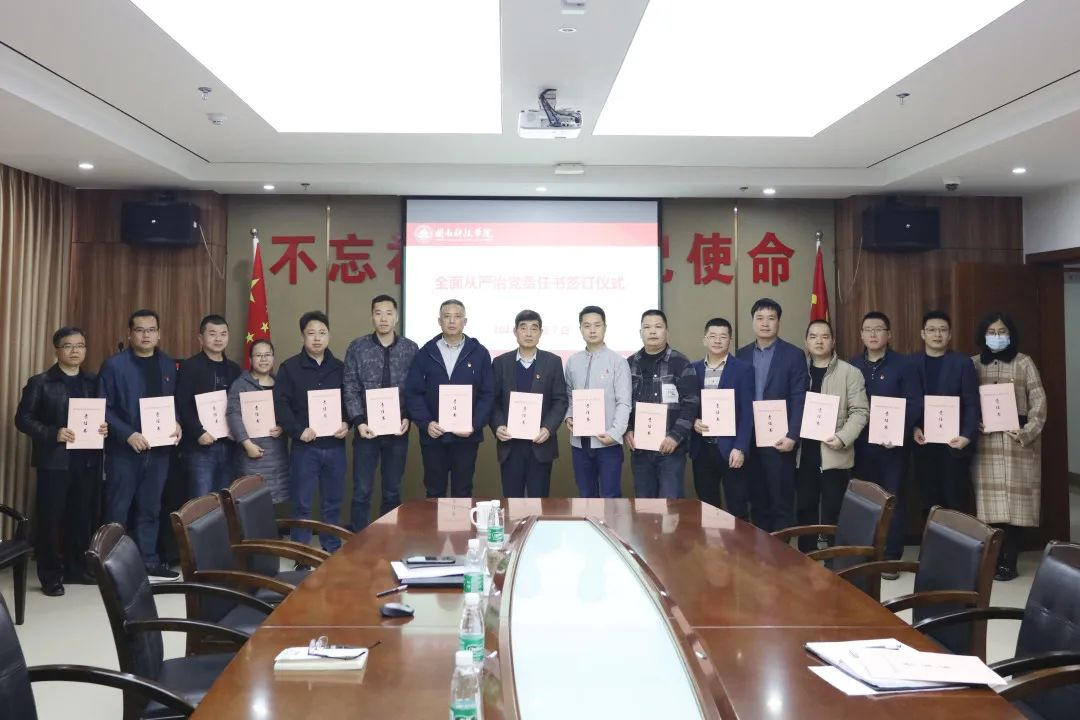 会上,校长游小波、校党委书记李旭分别与各二级学院党政领导、机关职能部门负责人主要负责人签订《全面从严治党主体责任书》,全体中层干部签订《廉政承诺书》。