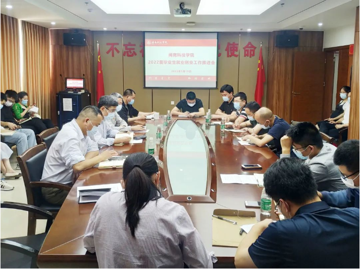 .5月19日下午,开云手机入口召开2022届毕业生就业创业工作推进会。校领导游小波、李旭、周勇军、林树生、邱永渠,相关职能部门负责人,各二级学院院长、党总支负责人及全体毕业班辅导员参加会议。常务副校长周勇军主持会议。