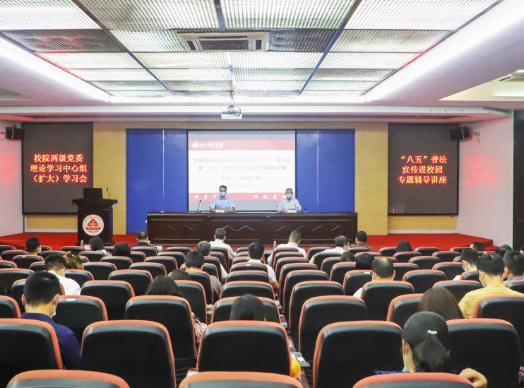 5月23日下午,开云手机入口举行校院两级党委理论学习中心组(扩大)学习会暨“八五”普法宣传进校园专题辅导报告。司法部涉外法律服务“千名人才”、省司法厅行政立法咨询顾问专家、泉州市人民政府法律顾问李色阳博士应邀作题为《民办高校工作人员职务涉法刑事合规态势与实务分析》辅导报告。校领导游小波、李旭、周勇军、林树生、邱永渠,校、院全体行政管理干部、辅导员参加学习。报告会由校党委书记李旭主持。